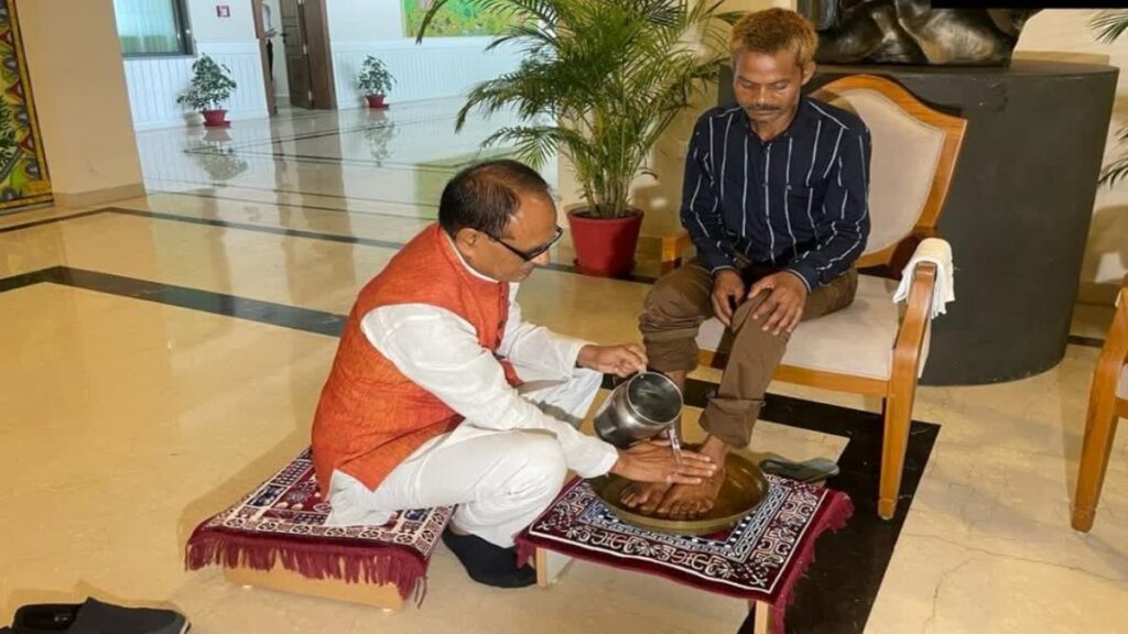 कल मध्यप्रदेश के मुख्यमंत्री निवास के दृश्य लगभग पूरे देश में चर्चा का केंद्र बने रहे l कैसे एक प्रदेश का मुखिया, सीधी में हुई एक घटना से पीड़ित व्यक्ति को न्याय दिलाने, उसका सम्मान पुनः लौटाने का हर संभव प्रयास करता है और प्रदेश के सभी जाति वर्ग के लोगों को सामाजिक समरसता व लोक आचरण का एक सारगर्भित पाठ पढ़ा जाता है l इससे पूर्व ही मुख्यमंत्री ने एक दिन पहले ट्वीट कर अपने मन की पीड़ा व्यक्त की थी। शिवराज सिंह चौहान ने कहा था “कि जबसे मैंने सीधी की घटना का वीडियो देखा, अंतर्मन अत्यधिक व्याकुल और हृदय पीड़ा से भरा हुआ है। मैं तबसे ही दशमत जी से मिलकर उनका दुःख बांटना चाहता था और यह विश्वास भी दिलाना चाहता था कि उनको न्याय मिलेगा। कल उनसे और उनके परिवार से भोपाल में अपने निवास पर मिलकर अपनी संवेदनाएं व्यक्त करने के साथ परिवार को ढांढस बंधाऊंगा।” उनके इस कथन के बाद से ही मीडिया और सोशल मीडिया में अनेकों प्रकार के कयास लगाये जा रहे थे l पर जिस प्रकार से प्रदेश के मुखिया का एक मानवीय पक्ष समाज के सामने आया है, वह अकल्पनीय है l जो मुख्यमंत्री निवास के वीडियो सभी मीडिया व सोशल मीडिया के प्लेटफॉर्म पर दिख रहे हैं, उसमें वे खुद दशमत जी को लेकर आवास के अंदर आए l उन्हें कुर्सी पर बैठाकर खुद समक्ष कुर्सी पर ना बैठकर एक छोटी मेज पर जा बैठे l जिसके बाद एक थाली बुलाई गई व सीएम ने अपने हाथों से उनके पैर धोए। इसके बाद सीएम ने शॉल ओढ़ाकर तिलक लगाकर व भगवान गणेश की एक प्रतिमा भेंट में देकर उनका सम्मान भी किया। और उन्होंने कहा, “कि मैं दशमत जी से माफी मांगता हूं। मेरे लिए जनता ही भगवान है।” इसके अलावा मुख्यमंत्री महोदय ने दशमत जी से अनेक विषयों पर चर्चा भी की। दशमत से पूछा कि क्या करते हो, घर चलाने के क्या साधन है, कौन-कौन सी योजनाओं का लाभ मिल रहा है? यहां तक उन्होंने दशमत को सुदामा भी कहा। सीएम ने कहा कि दशमत अब मेरे दोस्त हैं। एक तरफ इस पूरे घटनाक्रम पर विपक्ष अनर्गल आरोप लगाकर हाय तौबा मचाये हुए है l आखिर मचाये भी क्यों ना, वंशवाद परंपरा के अधीन चल रही पार्टी के नेताओं और उनके पुत्रों के लिए ऐसे दृश्य मात्र कल्पना में ही पूर्ण हो सकते हैं l जिन्होंने कभी गरीबी स्वप्न में भी ना देखी हो, उनके लिए किसी पंक्ति में खड़े अंतिम व्यक्ति के सम्मान की चिंता कल्पना का ही एक रूप है l दूसरी तरफ मुख्यमंत्री का यह नया संवेदनशील रूप लोगों द्वारा अत्याधिक सराहा जा रहा है l जहां उन्होंने दशमत के मनोभाव से उस घटना को विस्मृत करवाने का हरसंभव प्रयास किया व उससे व्यक्तिगत स्तर पर सुख दुख भी बाटें l पूर्व में भी एक ऐसा ही संवेदनशीलता का वाक्य सितंबर 2021 में आया था l जब एक प्रदेश का मुखिया कितना सहज और सरल होना चाहिए, ये जनता को देखने को मिला 