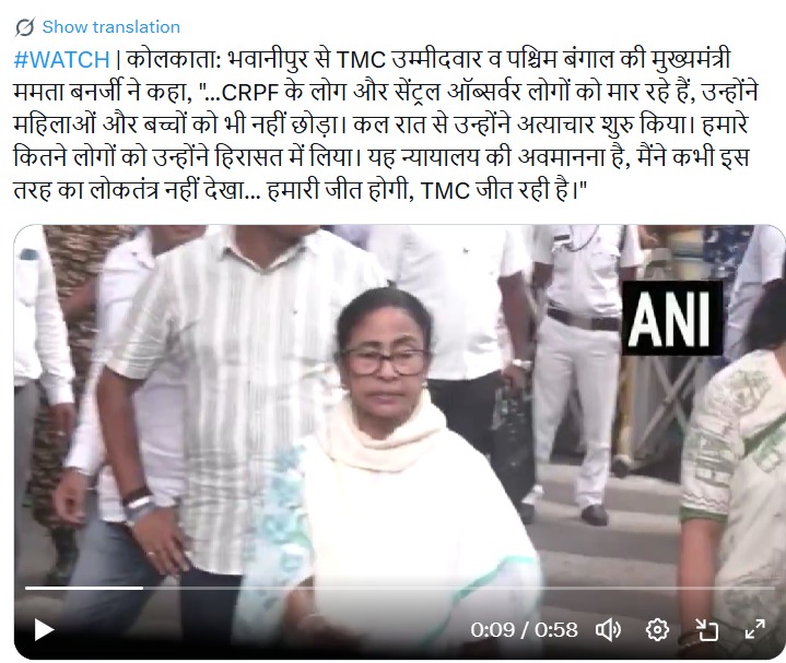 ममता ने आरोप लगाया कि उनके कार्यकर्ताओं को गिरफ्तार किया गया, वोटरों के साथ मारपीट हुई और महिलाओं-बच्चों तक को नहीं छोड़ा गया। उन्होंने कहा कि केंद्रीय बलों को सीमा की रक्षा करनी चाहिए, न कि किसी पार्टी की।