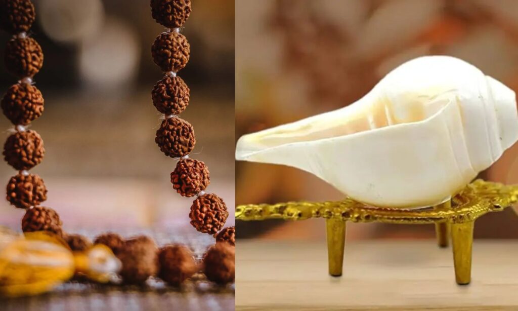 शंख और रुद्राक्ष (Conch & Rudraksha): शंख की पूजा और सात मुखी रूद्राक्ष घर लाने से शांति और लक्ष्मी की कृपा बनी रहती है।