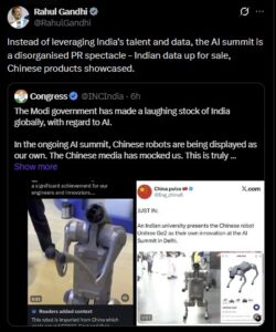 इस पूरे मामले पर राहुल गांधी की सोशल मीडिया पोस्ट के बाद राजनीतिक रंग भी जुड़ गया, जिसमें उन्होंने समिट में चीनी प्रोडक्ट्स दिखाए जाने पर सवाल उठाए।